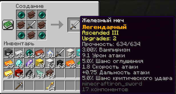 +0.75 Дальность атаки. Эндер-жемчуг и незеритовый лом увеличивают дальность атаки оружия, к которому они добавлены. Применимо только для оружия ближнего боя (меч, кинжал и др.).